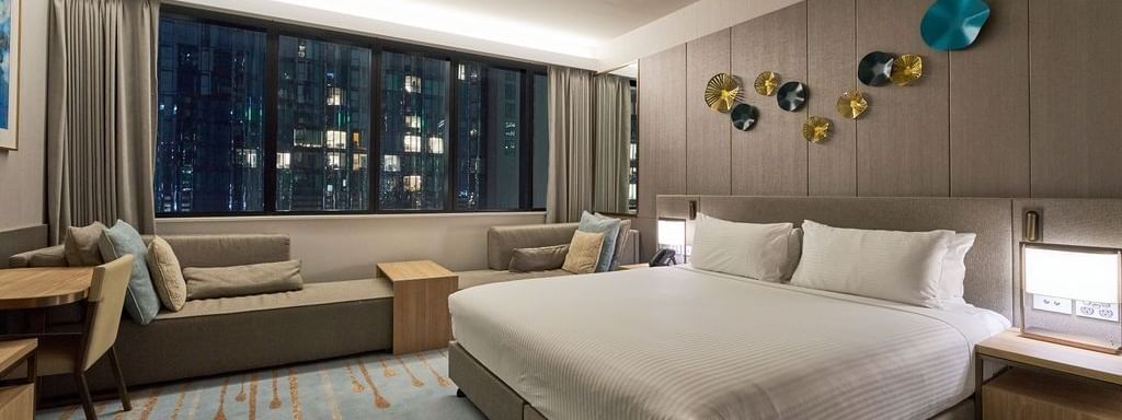 Discover luxury intertwined with modern sensibilities in our Deluxe Room at Novotel Melbourne Central. Spanning a generous 28m²/301ft², this space epitomises comfort, designed for guests who seek that extra touch of opulence.